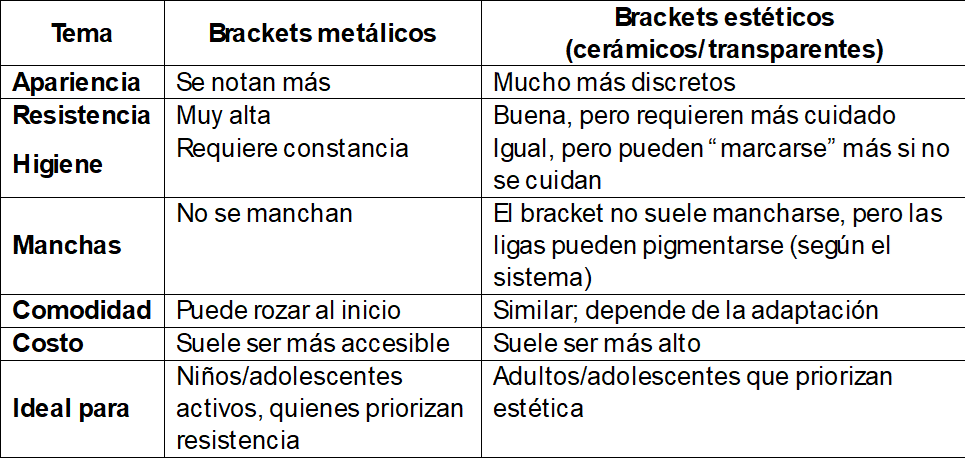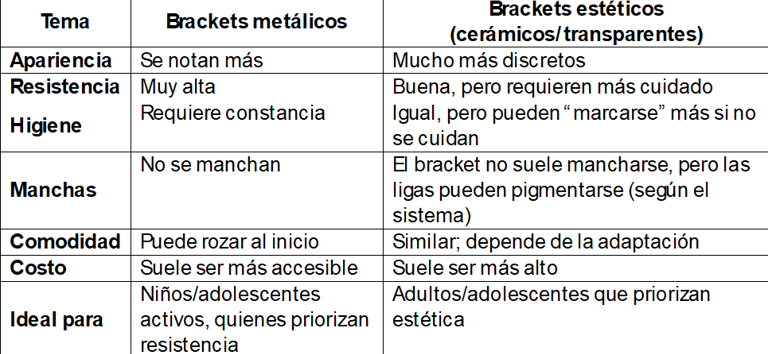“¿Me pongo brackets metálicos o estéticos?”